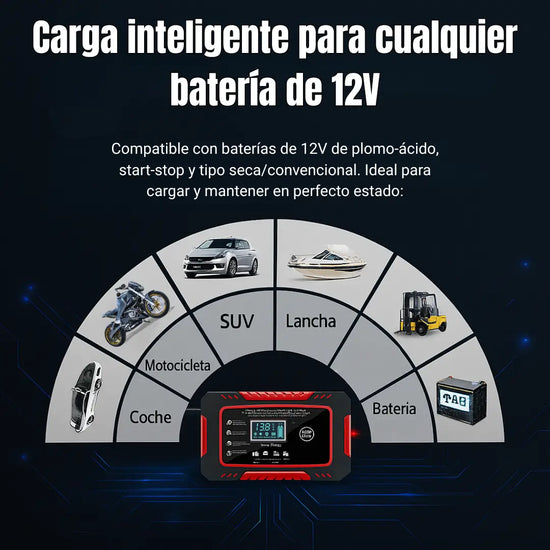 Sí, es compatible con la mayoría de baterías de 12 V: plomo-ácido, AGM, gel y estándar.