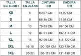 EJEMPLO: Si eres talla 8 (M) en pantalón, te recomendamos la talla 8 (M) en nuestro Short.